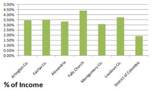 Montgomery County residents paid less than Arlington residents in all three categories. They paid $3,497 in property taxes, which is 0.72 percent of home values and 3.07 percent of income. D.C. residents had the best deal — an average of $1,778 paid in property taxes per year, which is 0.4 percent of home values and 1.9 percent of income.