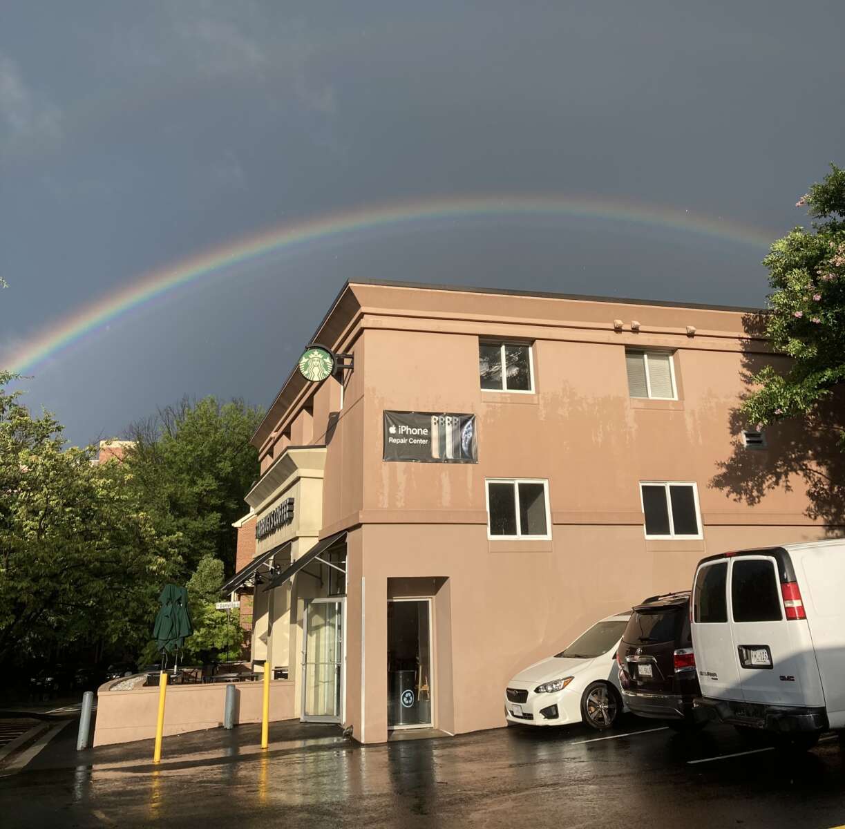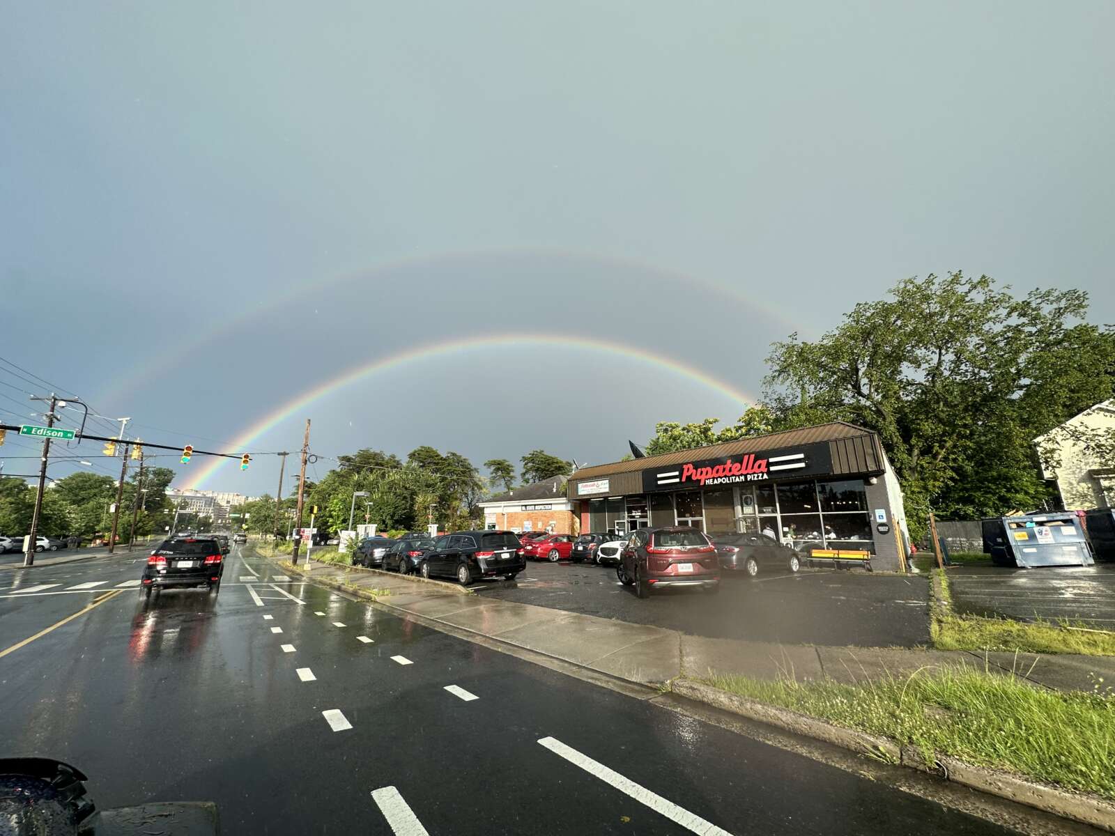 Double rainbow over Pupatella pizza in Bluemont on Friday evening (photo courtesy Jillian Bentson)