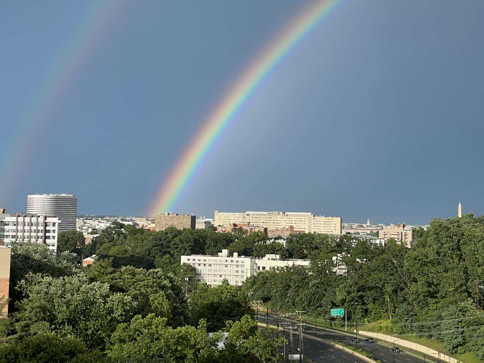 More Photos of Friday’s Rainbows — “You rarely get this level of intensity of color at BOTH tips of a #rainbow. Especially the “Indigo/Violet” part of the ROYGBIV. Looking at #DC from #Ballston.” [Twitter, Twitter, Twitter]