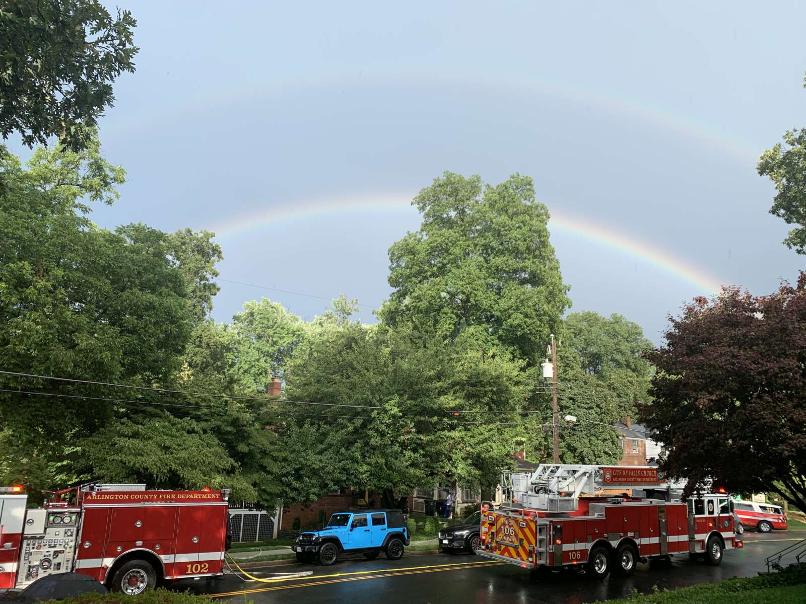 Double rainbow over ACFD response to a lightning strike in Dominion Hills on Friday evening (photo courtesy Hannah Stopnicki)