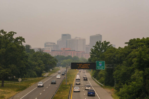 Rosslyn and Route 110 amid thick haze from the Canadian wildfires (staff photo by Jay Westcott)