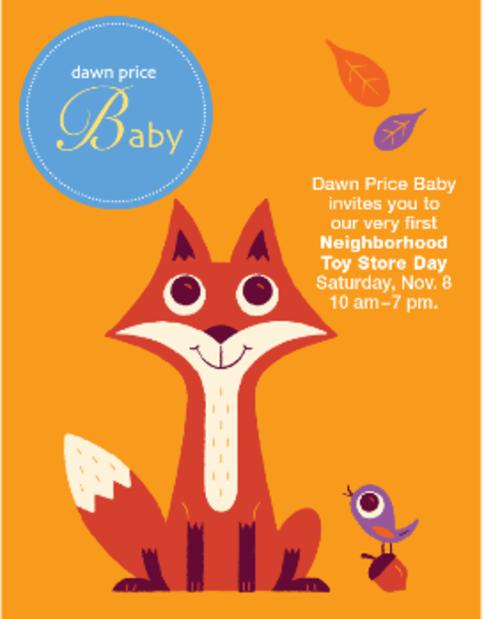 Dawn Price Baby invites you to our very first Neighborhood Toy Store Day Saturday, November 8 from 10 am – 7 pm.