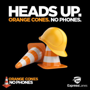 - “Orange Cones. No Phones.” signs will be visible throughout the 395 Express Lanes construction corridor.